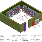 Utilizing CO2 to quickly flood and suppress fires in enclosed spaces.