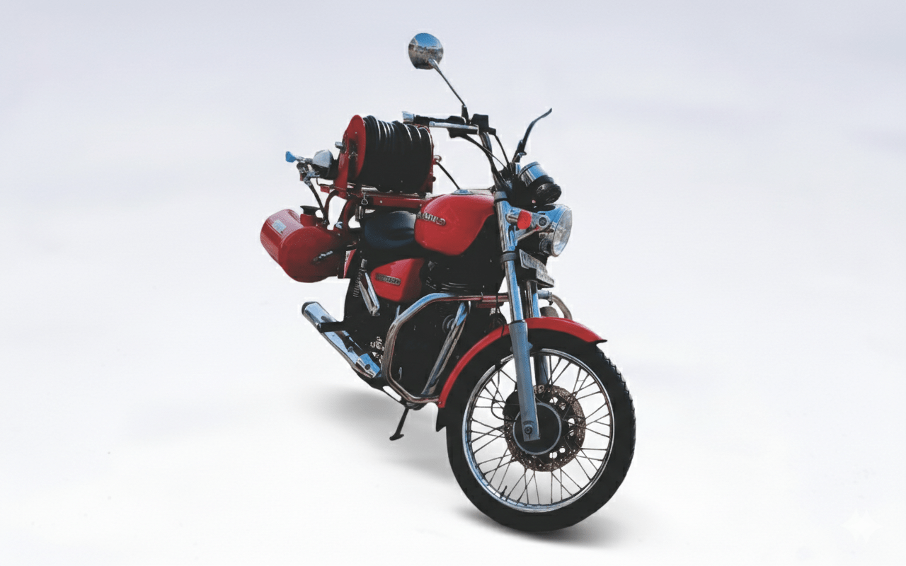 The Saviour Rapid Fire Fightning & Emergency Bike is a state-of-the-art solution designed for quick response in fire emergencies. This compact yet powerful vehicle is quipped with water tanks, a hose reel, and an extinguishing gun, providing immediate firefighting capabilities.Its compact size allows it to navigate through narrow spaces, ensuring rapid response in congested areas.The bike's design prioritizes safety and efficiency,making it an essential tool for modern firefighting and emergency rescue operations.Whether it's a small fire or a large- scale emergency,the Saviour Rapid Fire Fighting & Emergency Bike is ready to serve and protect.